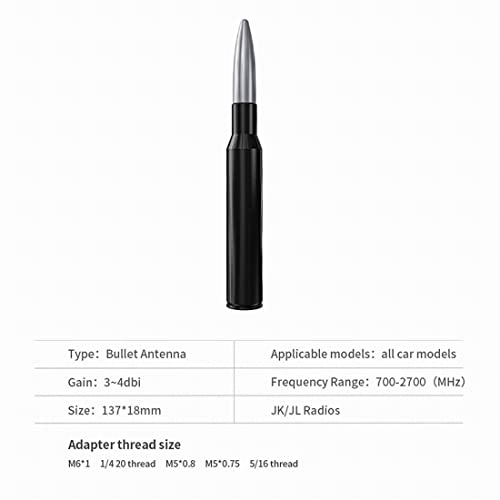 A PROVA DI LAVAGGIO AUTO: con un adattatore in acciaio inossidabile 304 ad alta resistenza, l'antenna proiettile non si piega o si spezza quando si passa attraverso l'autolavaggio. Inoltre, l'antenna è abbastanza corta da non doverti più preoccupare che l'antenna possa demolire la porta del tuo garage!