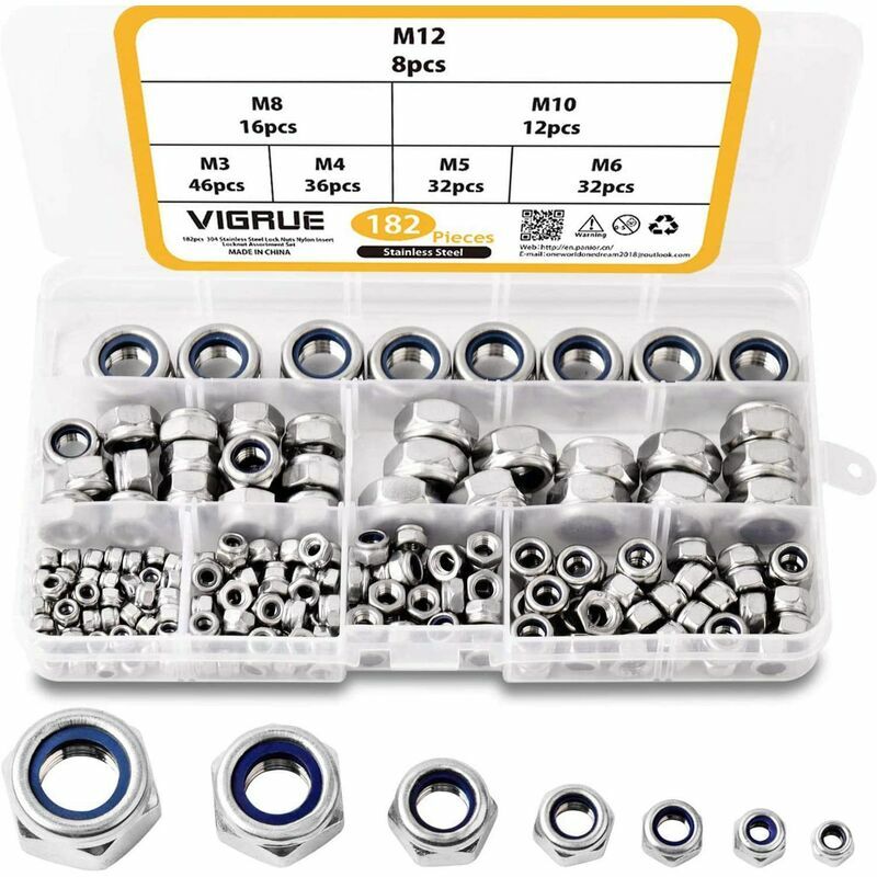 Descrizione prodotto Leggi di più Materiale Realizzato con un collare in nylon di resistenza industriale in grado di sostituire le rondelle di bloccaggio e impedire che i bulloni vengano esposti e fuoriescano fornendo una migliore sicurezza e una presa salda. Dado di bloccaggio in nylon M3: 4 * 5,5 * 6 mm - 46 pezzi M4: 5 * 7 * 7,8 mm - 36 pezzi M5: 5 * 8 * 9 mm - 32 pezzi M6: 7 * 10 * 11 MM - 32 Pezzi M8: 8 * 13 * 14.6 MM - 16 Pezzi M10: 10 * 17 * 19.1 MM - 12 Pezzi M12: 12 * 19 * 21.3 MM - 8 Pezzi Applicazione Il dado di anti -il nylon sciolto è un nuovo tipo di parti anti-elastiche ad alta antivibrazione, utilizzate in letti pieghevoli, guardaroba, minatori, tosatrici, motori, macchine tessili e così via. Leggi di più VIGRUE 120 pezzi disco abrasivo VIGRUE 7 pezzi punta per trapano a gradini VIGRUE 7 pezzi affilatrice per motosega VIGRUE 80 pezzi rondelle VIGRUE 120 pezzi piolo universale con kit di viti 200 pezzi dado a T