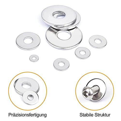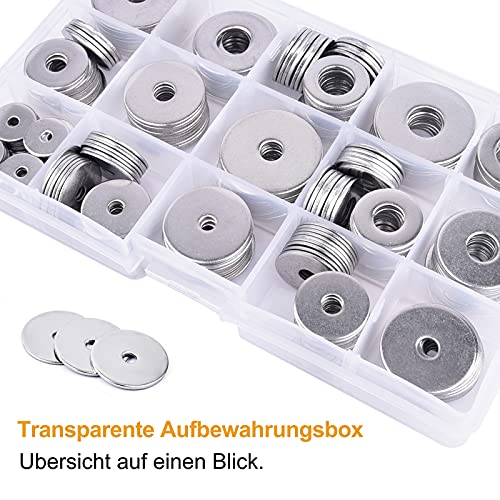 VIGRUE Set di 240 rondelle piatte, rondelle assortite, 7 misure, M3, M4, M5, M6, M8, M10, M12, rondelle di sicurezza in acciaio inox 304, in scatola di assortimento