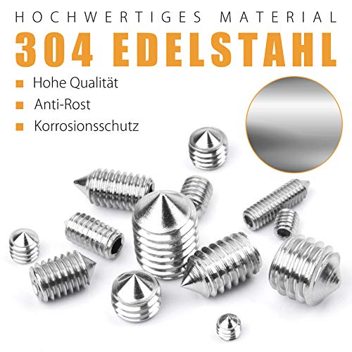【Diverse misure】: M3 * 3, M3 * 4, M3 * 10, M4 * 4, M4 * 6, M4 * 8, M5 * 5, M5 * 8, M5 * 10, M6 * 6, M6 * 10, M8 * 8, M8 * 12, totale 260. Ampia gamma di dimensioni e varietà per soddisfare le vostre diverse esigenze.