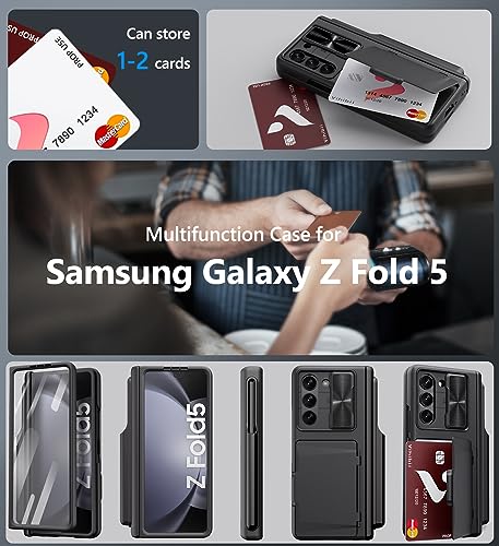Vihibii Custodia per Samsung Galaxy Z Fold 5 con supporto per penna S e scomparto per carte di credito, protezione per fotocamera e pellicola protettiva per cerniere, resistente agli urti, per Galaxy