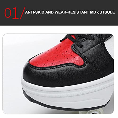 HYQW VIIPOO Skate Rulli Donne, 2in1 Scarpe Multiuso con Ruote Scarpe Skateboard, Scarpe Deformate Multifunzionali per Bambini Studenti per Adulti Pattinaggio a Rulli,Red-37EU