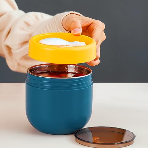 Tazza per cereali multifunzionale: questa fiaschetta per alimenti ha una capacità di 800 ml e viene fornita con un cucchiaio. Ha una struttura dello strato superiore e inferiore. I due contenitori indipendenti assicurano che il cibo non si mescoli e non sapori. Lo strato superiore può contenere cereali, avena, farina d'avena, ecc. Frutta e noci possono essere utilizzate anche come ciotola da portata. Lo strato inferiore viene utilizzato per contenere alimenti liquidi o pasta, come latte, zuppe, caffè, succhi di frutta, porridge, ecc. Può essere utilizzato in forni a microonde e lavastoviglie.