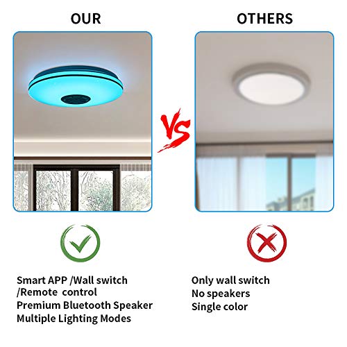 Viitech - Plafoniera a LED con telecomando, luce fredda e calda, con controllo tramite app, altoparlante Bluetooth Smart Music, cambia colore RGB da 18 W, 36 W, 13,76 pollici