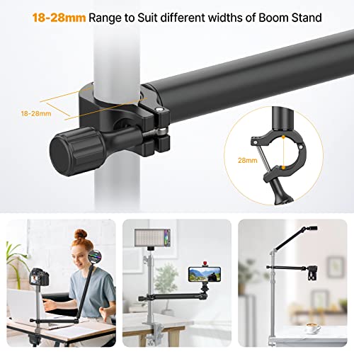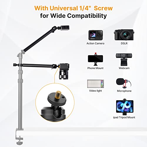Ampia compatibilità: entrambi i bracci Live Streaming Boom dispongono di una vite universale da 1/4 nella parte superiore, che consente di collegare bracci di prolunga e di espandere altri dispositivi. Ampia compatibilità con microfoni, luci a LED, luci ad anello, torce, action cam, webcam, telecamere e videocamere. Consente un rapido montaggio e smontaggio dei vostri dispositivi