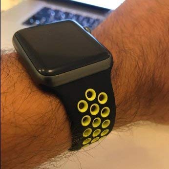 VIKATech Compatible Cinturino per Apple Watch Cinturino 44mm 42mm, Due Colori Morbido Silicone Traspirante Cinturini Sportiva di Ricambio per iWatch Series 6/5/4/3/2/1, S/M, Nero/Volt