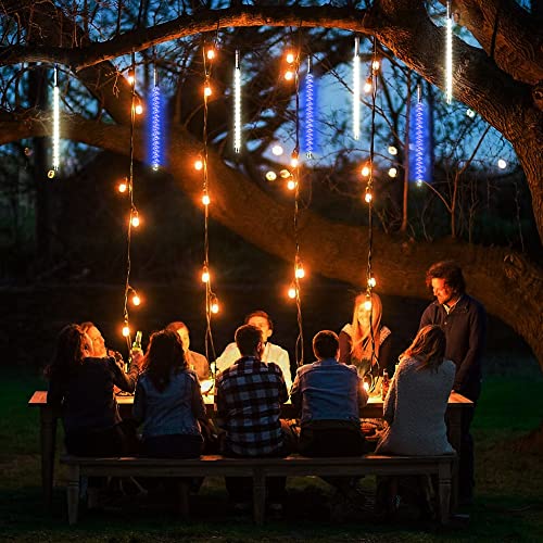 Vikdio Meteor Doccia Luci Pioggia, 20 Tubi Spirali 6.65m Lit Lunghezza 50-30cm Impermeabile Snowfall LED Luci per Matrimonio Albero Giardino di Natale Home Decor, Supporto 2 Set Connessi (Bianco-Blu)