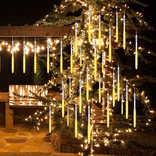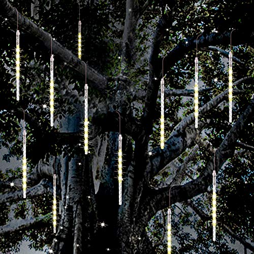 Vikdio Pioggia di Meteoriti Luci Della Pioggia, 30cm 10 Tubi a Spirale 300 LEDs Impermeabile Luci di Stringa per Natale Halloween Albero del Giardino Home Decor, Supporto 3 Set Gancio (BiancoCaldo)