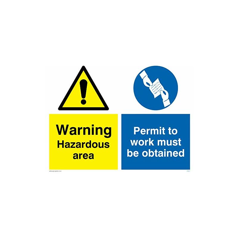 Viking segni cn657-a3l-acWARNING Hazardous area, permesso di lavoro deve essere ottenuto Sign, composito di alluminio 3 mm, 400 mm altezza x 300 mm larghezza