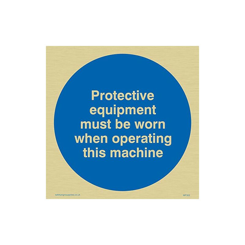 Viking segni mp302-s20-gv dispositivi di protezionedeve essere indossato durante il funzionamento questa macchina Sign vinile, oro, 200 mm altezza x 200 mm larghezza
