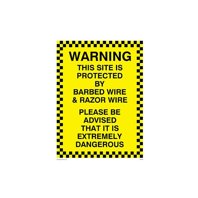 Viking segni wc509-a5p-vattenzione questo sito è protetto da filo spinato & Razor Wire si consiglia che è molto pericoloso Sign, vinile, 200 mm altezza x 150 mm larghezza