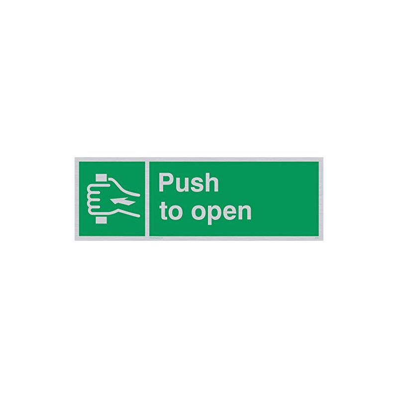 Viking segni sa393-l31-sPush to Open Sign, rigida plastica argento, 100 mm altezza x 300 mm larghezza