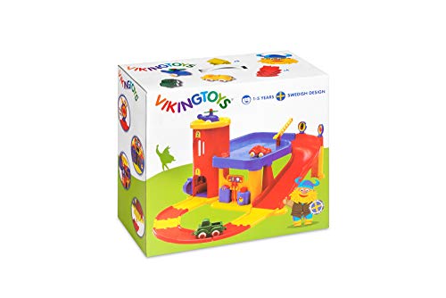 Viking Toys- Garage And Road Set with Helipad (-) Viking City Piccolo, Multicolore, VKT5556