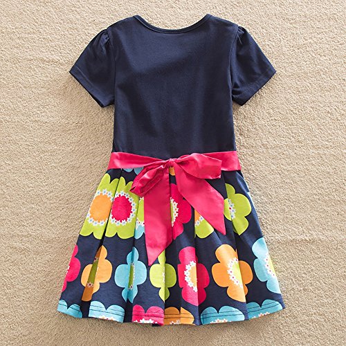 VIKITA Vestito Cotone Manica Corta Floreale Abito Principessa Casual Vestiti Bambina SH5868 4T