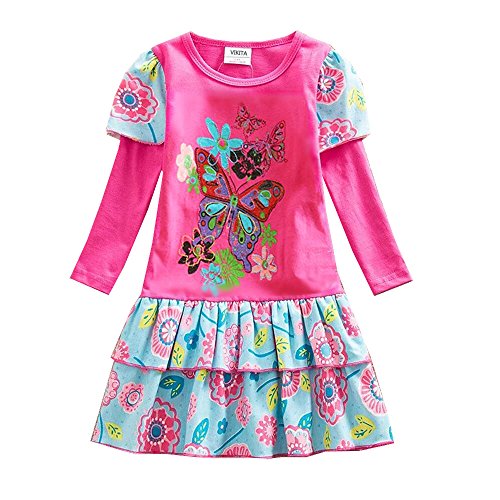 VIKITA Vestito Manica Lunga Cotone Bambina L191FUCH 7T