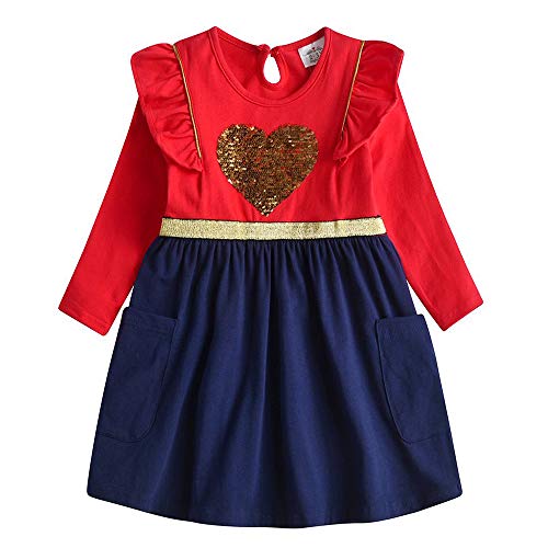 VIKITA Vestito Ricamo Floral Manica Lunga Cotone Bambina LH5780 2-3 Anni