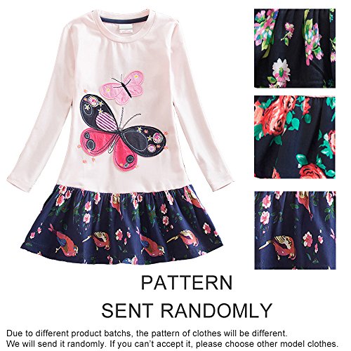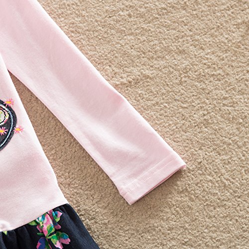 VIKITA Vestito Ricamo Floreale Manica Lunga Casuale Cotone Bambina LH5460PINK 4T