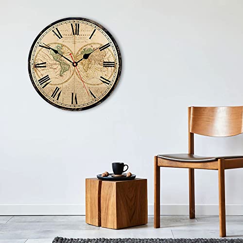 VIKMARI Numeri Silenzioso Non ticchettio Rustico Orologio da Parete in Legno Romani Gara di casa Orologi da Parete Decorativo Carta geografica 14 inch