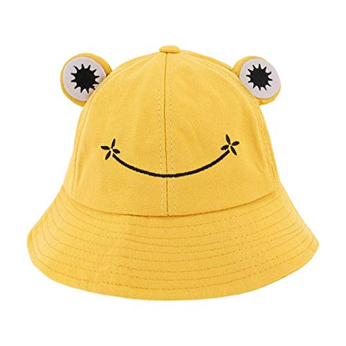 VIKMKM Unisex Ricamo Cappelli alla Pescatora Sport all'aperto Cotone Tesa Larga UPF50 + Festival dei Cappelli da Pesca,Yellow Frog