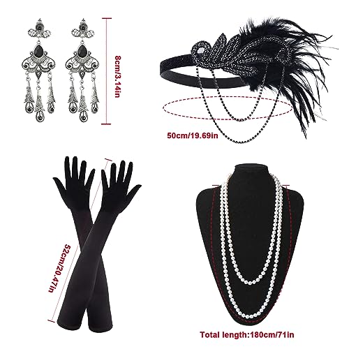 VIKSAUN 5 Pezzi 1920 Accessori Set, Anni 20 Accessori Donna, Costume Anni 20 Donna, 1920s Accessori Flapper Anni 20s Gatsby Costume Set, Collana Fascia Guanti, Anni 20 Accessori Donna (5 Pezzi)