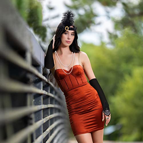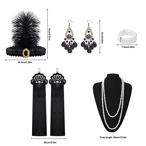 VIKSAUN 5 Pezzi 1920 Accessori Set, Flapper Anni 20s Gatsby Costume Set, Anni 20 Accessori Donna Gatsbby Costume, Charleston Accessori per Anni 20 Festa Accessori, 1920s Flapper Fascia (5 Pezzi)