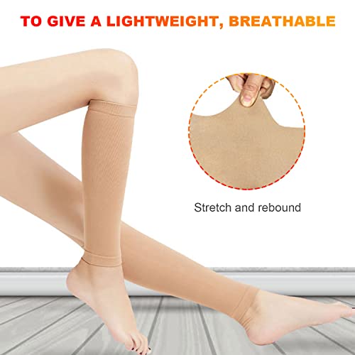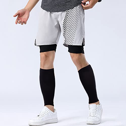 VIKSAUN 4 pezzi 2 paia Calze Compressione Fascia Elastica Polpaccio Donne e uomini Ciclismo Calcio Corsa Polpaccera Sportiva Gambali Compressione (Nero/ Beige)