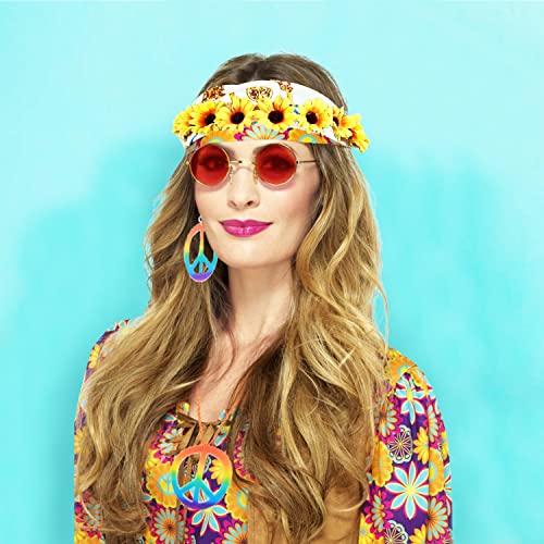 VIKSAUN 5 pezzi Hippie Costume Set, Hippie Costume Accessori per Donna Includere Daisy Sunflower Hairbands, Occhiali Hippie, Collana Simbolo Pace e Orecchini, Anni '60 Hippie Set Accessori per Abiti