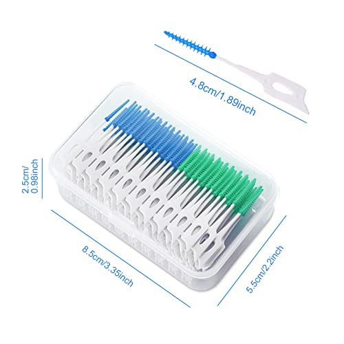 VIKSAUN 200 Pezzi Spazzolini interdentali, Stick interdentali Filo interdentale a doppio uso Silicone, Pennelli interdentali Spazzolino Dentale Orale Per la pulizia dentale interdentali (Blu Verde)