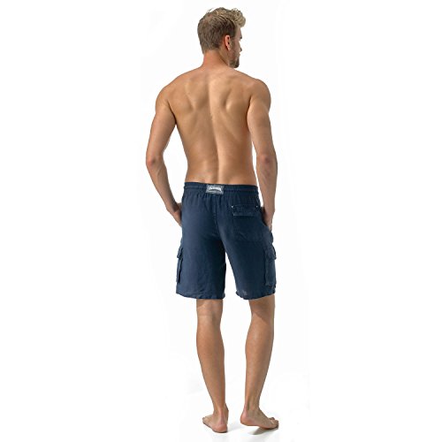 Vilebrequin - Bermuda Cargo Uomo in Lino Tinta Unita (Blu, XXXL)