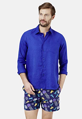 Vilebrequin Camicia Uomo in Lino Tinta Unita - Blu Batik - M