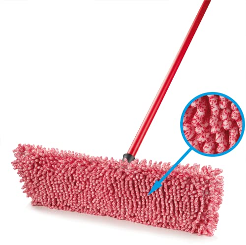 Il rivestimento in rosso e bianco elimina anche lo sporco più incrostato senza rovinare i pavimenti