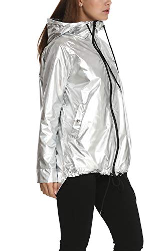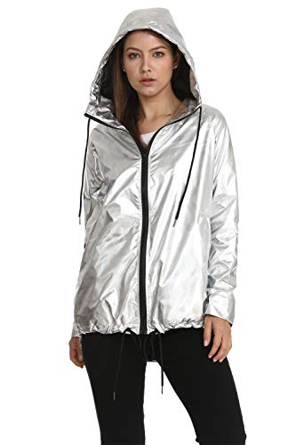 VILIER Parka impermeabile da donna con cappuccio color oro metallizzato giacca da festival impermeabile taglia 8-24 Argento L