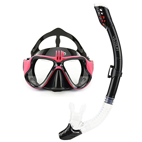 VILISUN Set Snorkeling Subacquea o Immersioni Tubo, sub-visione ampia e limpida antinebbia antiperdita per adulti, Vetro temperato materiale professionale, cinturino silicone morbido regolabile Nuoto Occhiali con Supporto per fotocamera Gopro con Snorkel Full Dry