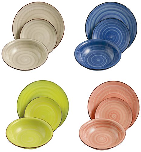 Villa d'Este Home Tivoli Baita Light Servizio Piatti, Gres Smaltato Dipinto a Mano, Multicolore, 12 Pezzi