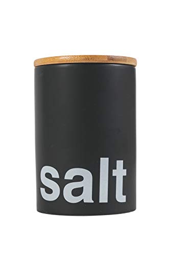 Villa d'Este Home Tivoli Barattolo Sale in gres con Coperchio in Bamboo, Nero, Misure: Ø 10 x h. 14,6 cm