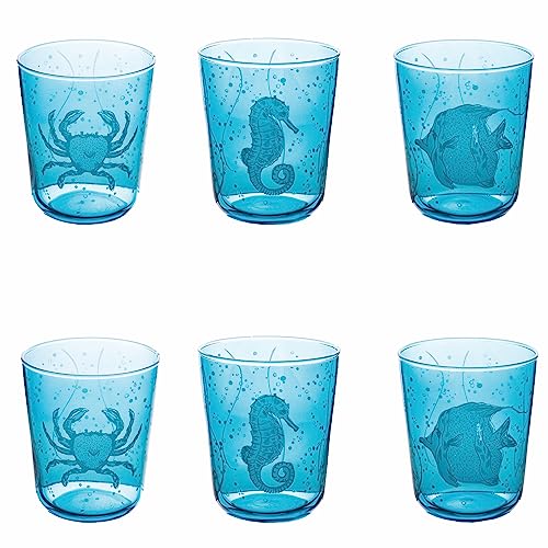 Villa d'Este Home Tivoli Set 6 bicchieri acqua 315 ml in vetro, decoro marino, Under Sea