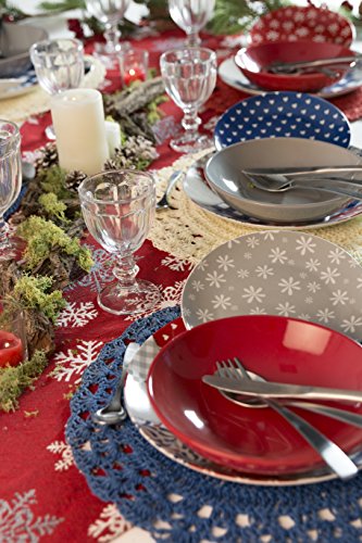 Villa d'Este Home Tivoli Winter Patch Servizio Piatti, Porcellana+Gres, Multicolore, 27x27x3 cm, 18 unità