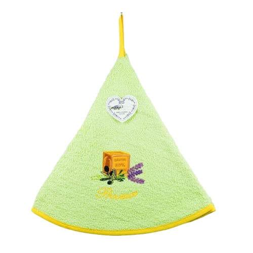 Villages de Provence Asciugamano Un Savon - Rotondo con Cravatta - Anice - Modelli Ricamati - 100% Cotone - Ø 65 cm di Diametro - Cucina o Bagno - Lavabile in Lavatrice