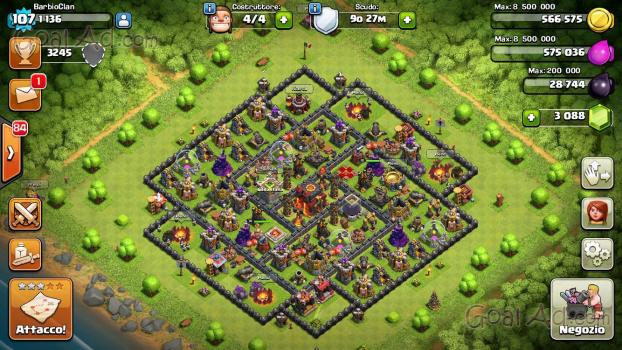 Vendo villaggio clash of clans livello 107, th 10, truppe non ancora maxate ed eroi liv.18