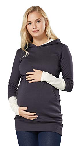 Zeta Ville Donna Felpa con Cappuccio in Jersey Premaman Allattamento 137 (Grafite & Ecru, IT 50, 3XL)