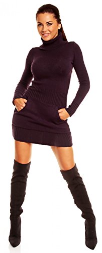 Zeta Ville - Vestito Corti Abito Maglia Tasca Frontale Collo Alto - Donna 178z (Porpora, IT 40/42, S/M)