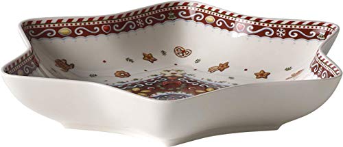 Contenuto: 1x Villeroy & Boch Winter Bakery Delight Ciotola a forma di stella "Casa di panpepato" (24,5 cm), Materiale: Porcellana Premium, Colore: Rosso/Multicolore