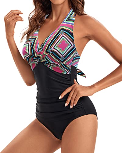 Viloree Costumi da Bagno Donna Costume Intero Piscina Controllo della Pancia Donna Scollo a V Halterneck Luce Colorata 3XL