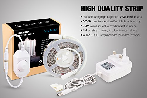 ViLSOM - Set luci con illuminazione a LED per specchio da trucco / toeletta, 4 m, include alimentatore e dimmer, specchio non incluso.