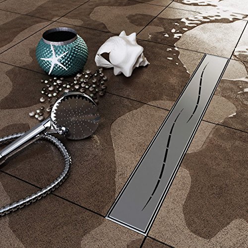 VILSTEIN - Canalina per doccia con sifone, canalina di scarico per il pavimento della doccia, Onde, 30 cm, Argento, VS-DB01-30W