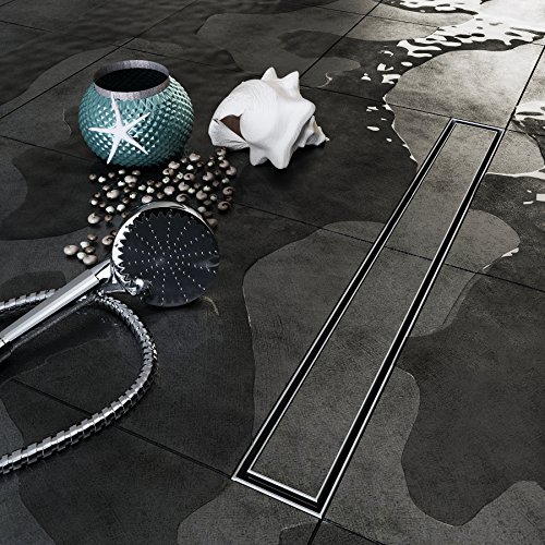 VILSTEIN - Canalina per doccia con sifone, canalina di scarico per il pavimento della doccia, Piastrellabile, 90 cm, Argento, VS-DB01-90B