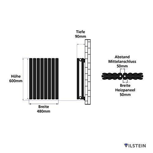 Potenza: con una potenza di 645 W, questo radiatore è adatto per ambienti fino a circa 7 m². Grazie alla selezione di diverse dimensioni e potenza, è possibile riscaldare facilmente stanze di diverse dimensioni. Questi valori possono variare a seconda dell'isolamento e della casa