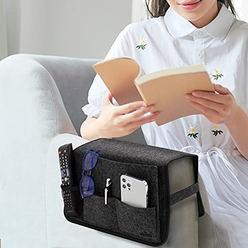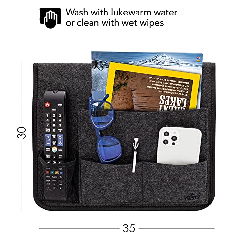 VILSTO Comodino da Appendere al Letto portaoggetti in Feltro, organizer per casa, ufficio, dormitorio, tasca portaoggetti letto, Tasca Telecomandi da Divano, Organizer da Bracciolo, Grigio Scuro