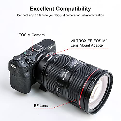 Ottima Compatibilità: l'adattatore di montaggio VILTROX EF-EOS M2 è progettato per consentire l'obiettivo EF compatibile con fotocamere mirrorless Canon EF-M, incluso compatibile con Canon EOS M m50 ii m6 ii m200 m50 m6 m5.