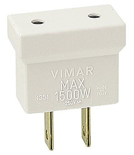 Vimar RI.01351B Adattatore semplice SICURY 125 V~, max 1500 W, bianco - spina 2P 15 A 125 V~ standard americano spinotti piatti non polarizzato, presa 2P per spine 2P con spinotti ø 4 mm interasse 19 mm